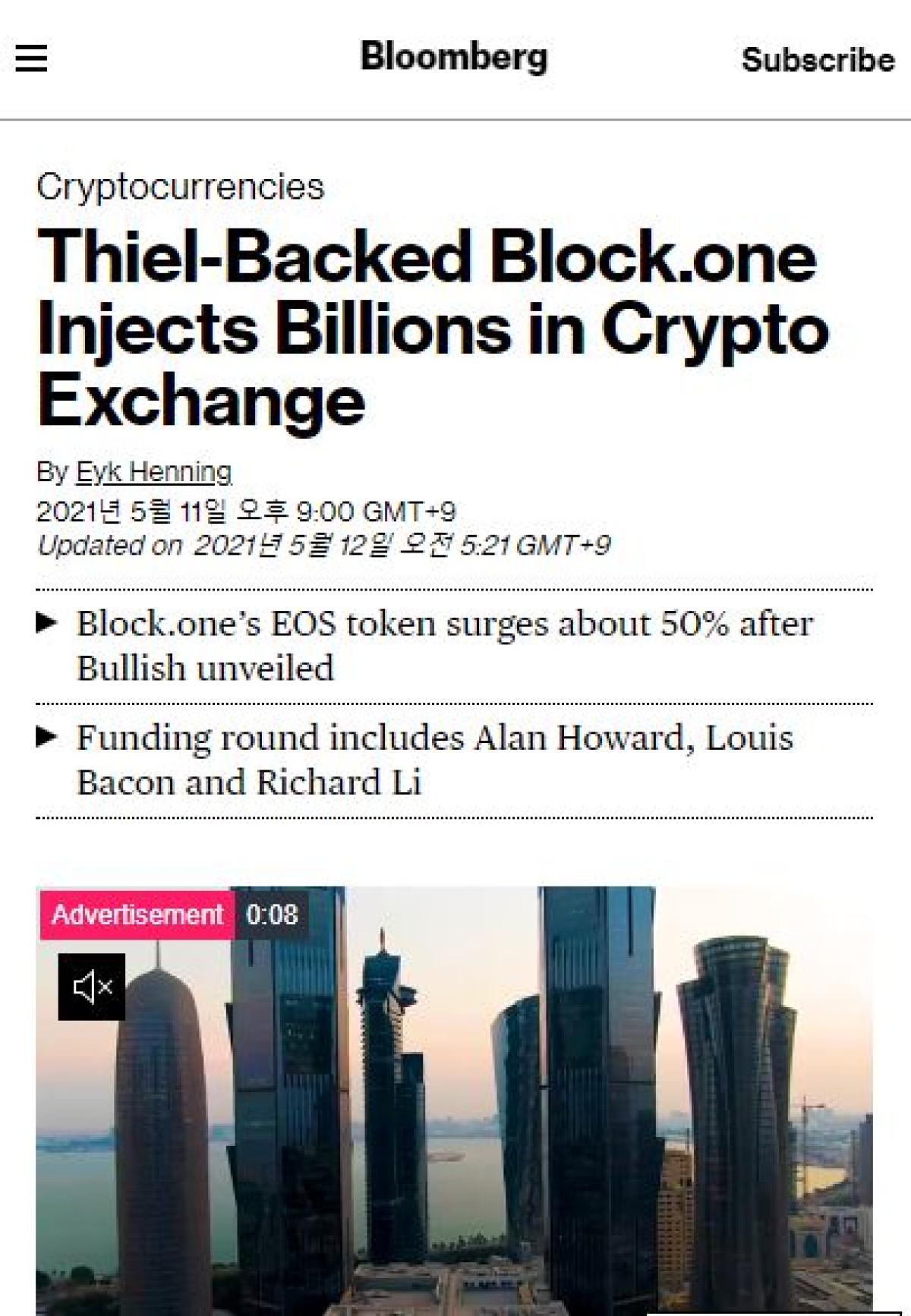 자유 #Eos #Bullish #Bullish Global #Bloomberg #피터틸 #피터 틸 #블룸버그 #이오스