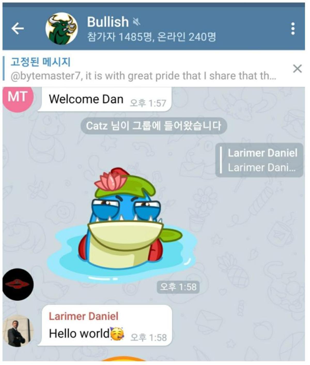 댄라리머 bullish 텔레방에도 들어옴 ㅋㅋ