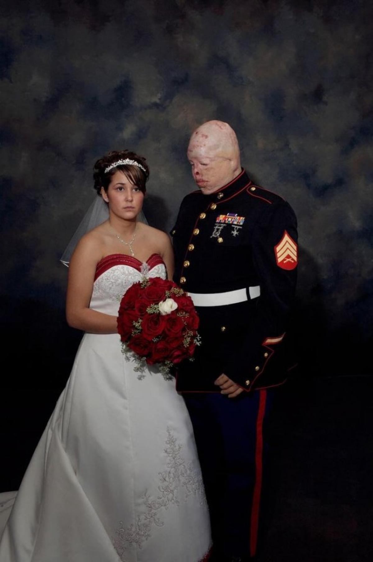 고등학교 동창이던 둘은 결혼을 약속했다. 그는 해병대에 입대했고 곧이어 2003년 이라크에 파병을 갔다 1년뒤 그는 폭탄테러로 얼굴을 잃었다 2년간 3...