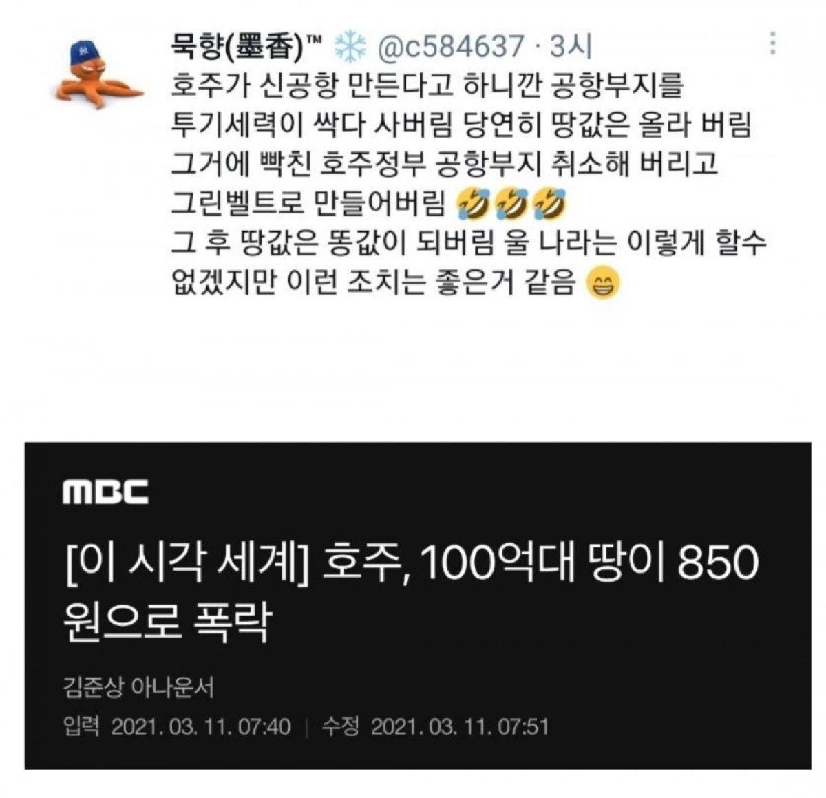 호주 정부가 땅 투기한 지역 그린벨트로 만듬 100억 땅값이 850원으로 폭락하게 만듬ㅋ