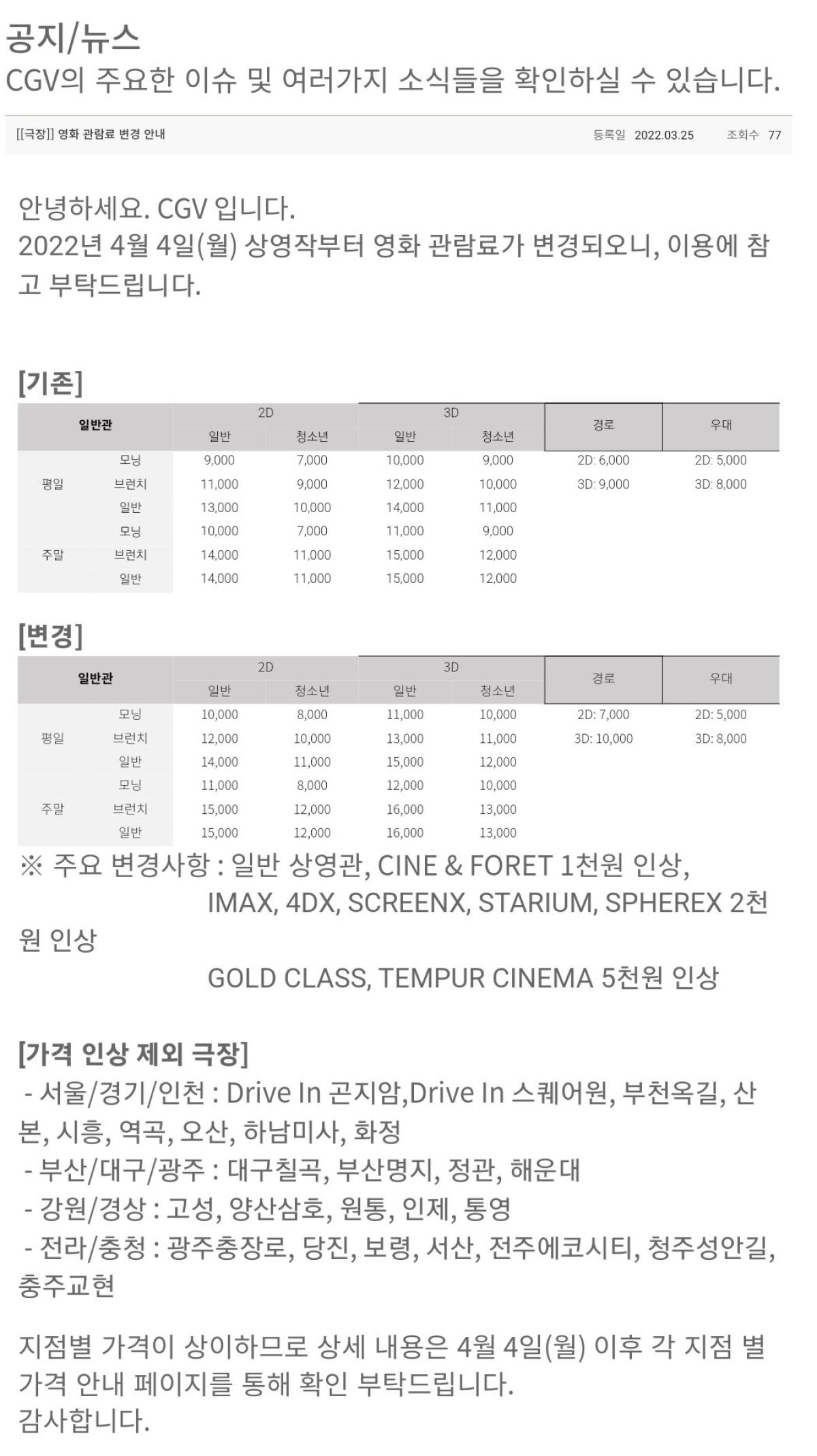 자유 #영화 요금인상 #CGV 요금인상 #CGV